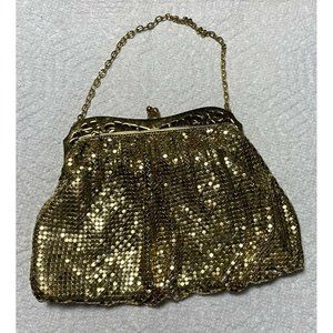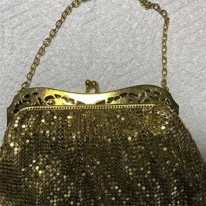 Vintage WHITING & DAVIS Gold Tone Mesh Purse With Filigree Metal Top