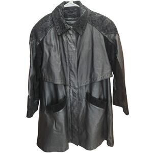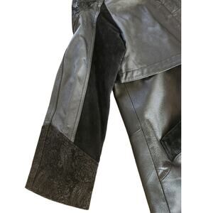 Don't miss out on this beautiful vintage black Wilsons leather coat in excellent condition! Coat zips and snaps and also has a removable black thinsulate liner. There is suede throughout the coat.