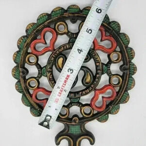 Vintage WILTON Cast Iron Painted Trivet W/ Feet Pot Holder Hot Plate Red Hearts