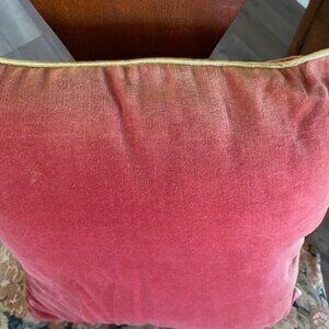 It's 13" square and nicely filled (not stiff but not underfilled either). Other than the fading, it's in perfect condition with no rips, tears or stains. The embroidery and cording are in pristine condition. If you decorate in Country or Cottage decor, the fading actually fits in with your decor better than a bright "out of the box" pillow would!