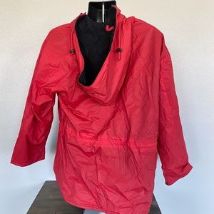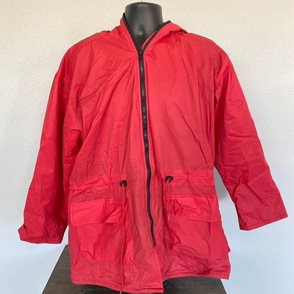 Vintage WIPPETTE Rainthings Red Vinyl Fleece Jacket Rain Coat Hoodie Womens Lrg