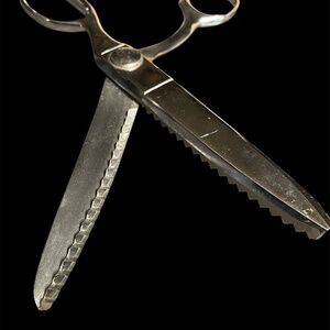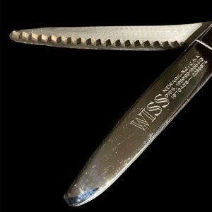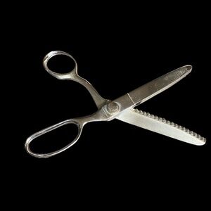 The Vintage WISS Pinking Shears Sewing Scissors are a rare find for collectors of vintage sewing memorabilia. Made in the United States, these dressmaker's scissors feature a unique chrome zig zag design that adds a touch of retro charm to any sewing project. With a patent number of 2286874, these original pinking shears are a true vintage gem that combines style and functionality for the avid seamstress or collector alike.
