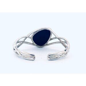 This stunning estate vintage cuff bracelet by renowned designer Whitney Kelly (WK) features a vivid mosaic opal inlay centerpiece set in solid sterling silver 925. The opal displays a mesmerizing blend of blue, green, and violet hues, arranged in a smooth mosaic cabochon that shimmers with every movement. The cuff itself boasts an elegant openwork woven or braided design that highlights the artisan craftsmanship of Whitney Kelly. The inside is signed “WK Sterling” and is a true representation of her bold Southwestern and modern organic style.