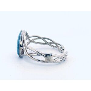 The bracelet is rigid, open in the back for easy wear, and fits a small-to-medium wrist. It has a weighty, high-quality feel at 26.8 grams, giving it substance without being overly heavy. This timeless piece is perfect as a statement accessory or collector’s item for lovers of Southwestern, artisan, or opal jewelry.