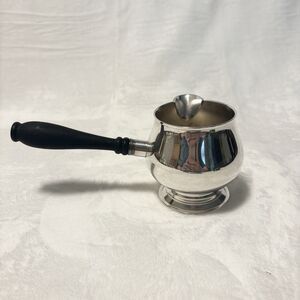 Vintage WM ROGERS Silverplate Pipkin Gravy Bowl Brandy Warmer w/Wood Handle