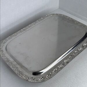 Purchased from an estate sale. The item does show some wear on the top. This tray is very thick and sturdy. Features a motif around the edges. The item is marked on the back.
