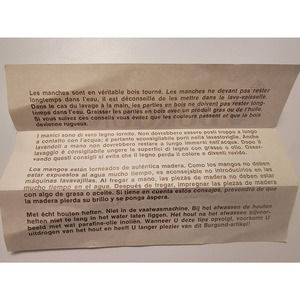 In pre-owned, used condition. The wood is rough, but feels solid (despite what the insert says, we were not great at taking care of the wood handle). See pictures for condition.