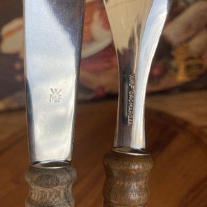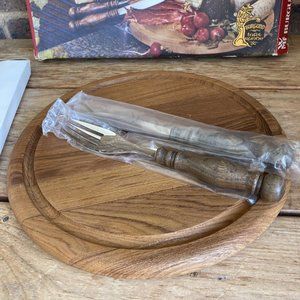 Vintage WMF Holzteller Mit Besteck Snack Set Small Wood charcuterie Board with 18/10 Cromargan fork and knife with wood handles.