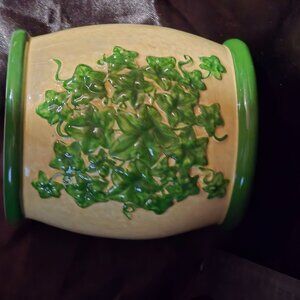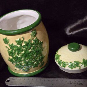 Vintage WMG 07 Ceramic Canister With Ivy Design 10" Tall Dishwasher & Microwave