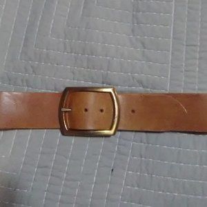 HERE'S A NICE BELT TO WEAR. IT'S A LIGHT BROWN. IT MEASURES 33 INCHES IN LENGTH AND IS 2 INCHES WIDE.