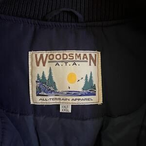 woodsman jacket, vintage ata coat, woodsman all-terrain apparel, vintage outdoor jacket, mens navy blue winter coat, vintage workwear jacket, 90s hiking gear, utility field jacket, bomber collar jacket, tall men’s jacket 2XL, vintage outdoorsman style, heavyweight cotton jacket, nylon lined work coat, warm insulated vintage coat, old school woodsman apparel, preppy outdoor jacket, durable vintage gear