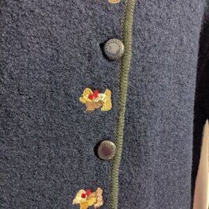 Navy blue mid to heavy weight wool shaket granny grandma core wool with embroidered dogs