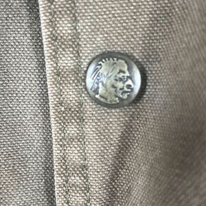 š„Vintage WOOLRICH Denim Wool Blanket Lined Canvas Barn Coat Aztec Jacket - Tan with Leather Collar