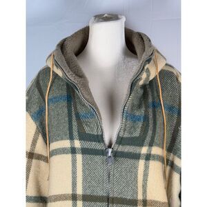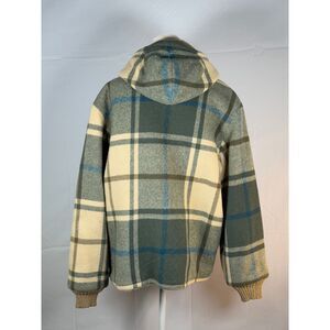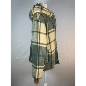 Vintage WOOLRICH Full Zip Hooded Jacket Mens 42 Cream Buffalo Plaid Wool 50s 60s