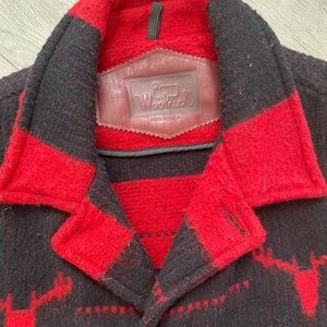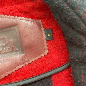 This is a real WOOLRICH black and red plaid vintage hunting jacket in size L made in fabulous USA