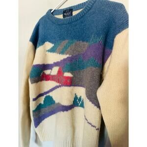 Vintage WOOLRICH Winter Nature Ski Town Print Womens Sweater 90s Size Large