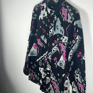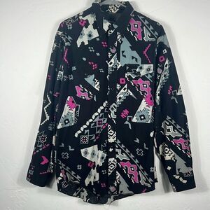 🔥🔥 Vintage WRANGLER BrushPopper Aztec Print Western Cowboy Cut Button Down Shirt