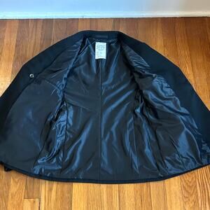 Authentic vintage Women’s Royal Naval Service (WRNS) Royal Navy uniform jacket made by J. Compton Sons & Webb Ltd. This classic double-breasted naval blazer features structured notched lapels, six-button front, and a smooth full lining. Made from durable diagonal serge wool in traditional deep navy/black.