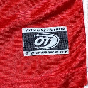 The jersey is pre-owned and has a couple spots on the back side (photo 6), but it's still in good, wearable condition without any rips or holes.