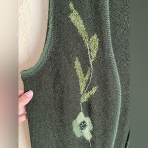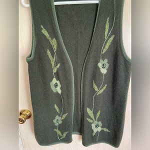 Vintage WU’S Sweater Olive Green Floral Angora Blend Vest Sz Large