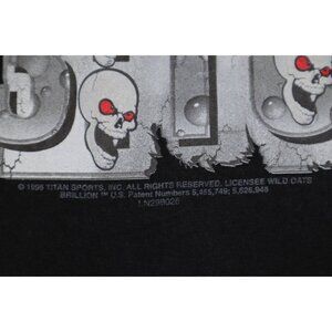 This Vintage WWF 1998 Stone Cold Steve Austin "Austin 3:16" Black T-Shirt in size L is an officially licensed product by Wild Oats, featuring the iconic wrestler Steve Austin from the WWF era. Made in the United States, this classic black shirt is perfect for male wrestling fans looking to show their support for the legendary Austin 3:16. With its timeless design and high-quality construction, this shirt is a must-have for any wrestling memorabilia collector or fan of Stone Cold Steve Austin.