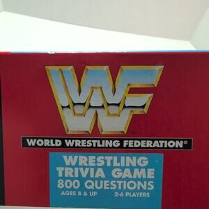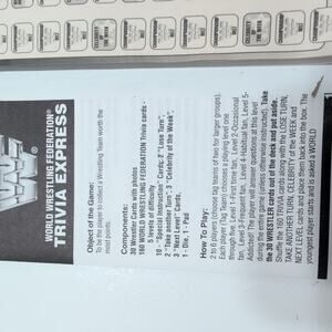 Dive into the Attitude Era with this piece of wrestling history. The box art alone is a time capsule, featuring legends like The Undertaker, Mankind, and a young Rock. Open the box to find all 800 trivia questions, the die, and the scoring materials. Most notably, the 30 wrestler cards are all present and accounted for, including the sought-after "rookie" card of The Rock (Dwayne Johnson).