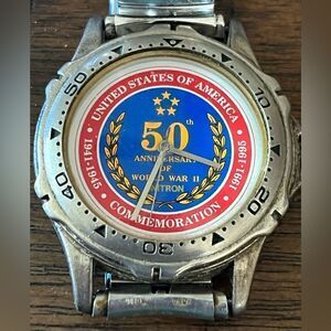 Vintage WWII 50th Anniversary Commemorative Watch USA Unitron Works
