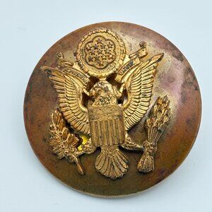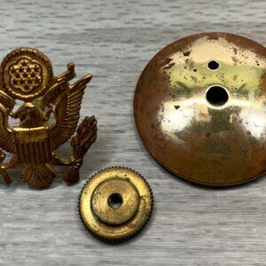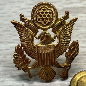 Vintage WWII US Military Brass Eagle Insignia Hat Pin Screw Back Emblem Badge