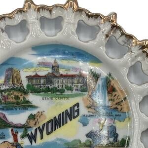 Vintage WYOMING Landmarks Collectible Souvenir Travel Memorabilia Plate Decor
