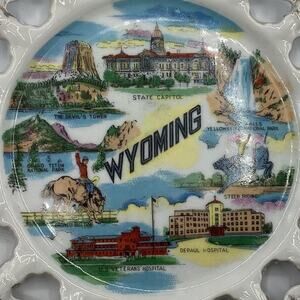 Vintage WYOMING Landmarks Collectible Souvenir Travel Memorabilia Plate Decor