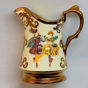 Vintage Wade Festival Creamer Ceramic Small Pitcher Embossed Dancing Couple 1950