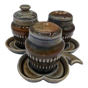 Vintage Wade Irish Porcelain Shamrock Salt & Pepper Shaker Set With Mustard Pot