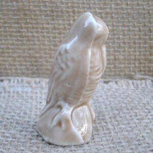 Vintage Wade Whimsies mini hawk figurine from 1970s. Heavy porcelain, with light brown glaze. Made in England. 1 3/4 inches high, 1 1/8 inches long, 3/4 inch wide. Wade Whimsies were put in Red Rose tea boxes. Excellent condition, no chips or cracks. Great for anyone who likes Wade Whimsies or bird figurines.