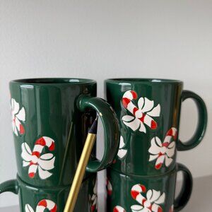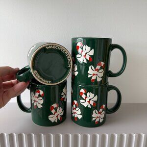 Vintage Waecherbach Germany Green Candy Cane Mugs Set of 4