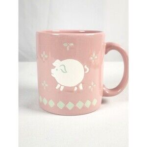 This vintage ceramic Waechtersbach pink pig mug from West Germany is a 12 ounce double-sided mug with an embossed pig design. Made of ceramic and porcelain, this medium-sized round mug is perfect for all occasions.