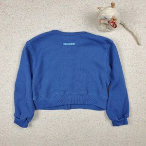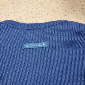 Vintage blue waffle knit top with floral embroidery, great feeling fabric like it will last!
