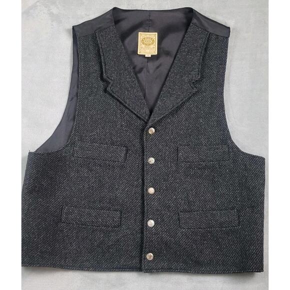 Vintage Wah Maker Wool Vest Mens Large Black Waistcoat western frontier clothing