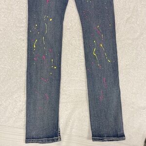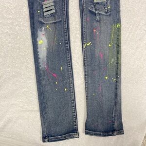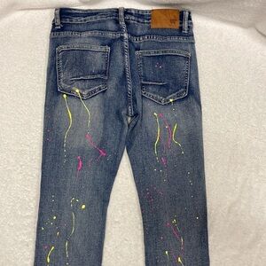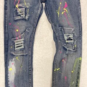 Vguc pfsf no stains distressed paint splatter skinny fit blue jeans denim 5 pocket button fly boys 18