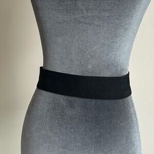 Vintage Waist Belt- 3d puffy Clasp - Gold Fabric- Black Stretch M/L, some wear