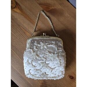 Vintage Walborg Beaded Evening Purse Cream with Gold Chain Clasp, Handmade HK
