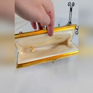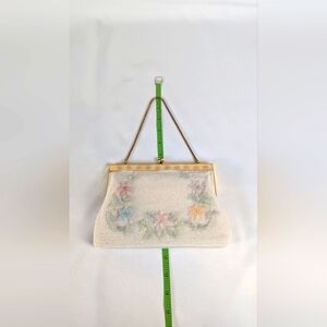 This bag was handmade more than 50 years ago and is in remarkable condition. The only notable flaw is the rhinestone on one of the kisslock clasp is a bit dull / not sparkly. No stains, no holes, no odors.