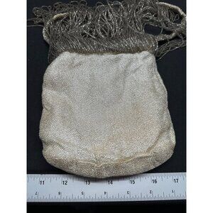 Vintage Walborg Flapper Silver Gray Beaded Evening Bag With Fringe & Strap