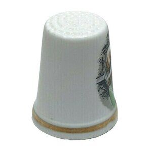 This fine bone china thimble celebrates Wales' rich coal mining heritage. Its detailed design features a coal miner in action against a scenic backdrop, making it both a functional item and a historical keepsake. A golden trim adds a touch of elegance to the piece, perfect for display or collection.