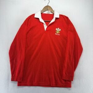 Vintage Wales Rugby Shirt Men's Large Red Embroidered Logo Soccer Futbol 90s