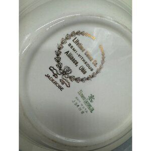 This pair of vintage Walker China soup bowls features a classic green rim with a white floral center. Ideal for collectors or tableware enthusiasts.
