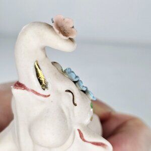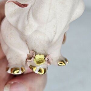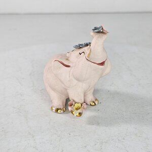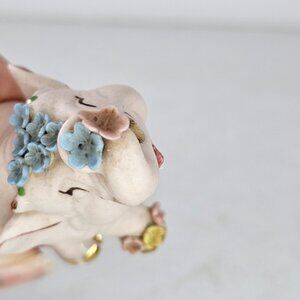 Vintage Walker Renaker Pink Bisque Elephant Figurine Gold Accents Flowers
