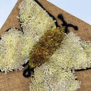 Vintage Wall Hanging 1970s Latch Hook Carpet Rug Burlap Butterfly Retro Boho