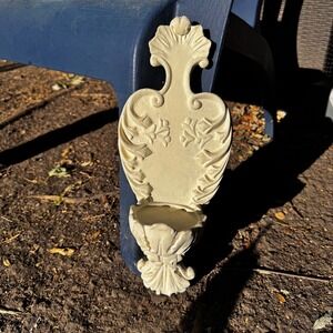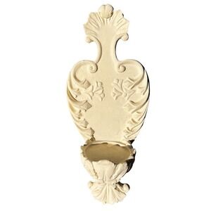 Keywords: vintage, wall mount, holy water font, religious decor, faux stone, wall sculpture, spiritual, home decor, vintage decor, ornate, floral, cream, basin, entryway, meditation room