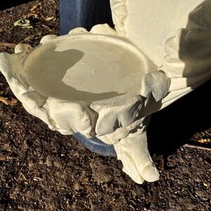 Vintage Wall Mount Holy Water Font White Faux Stone Religious Decor