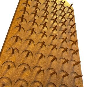 This Vintage Wall Mount Pressed Wood Thread Spool Holder is a unique and practical storage solution for sewing enthusiasts. With 69 pegs, it provides ample space to organize and display your thread spools in one convenient location. Made of sturdy pressed wood in a classic brown color, this spool rack adds a touch of vintage charm to your crafting space. Crafted in the United States, this piece combines quality craftsmanship with a nostalgic design that will enhance any sewing room.